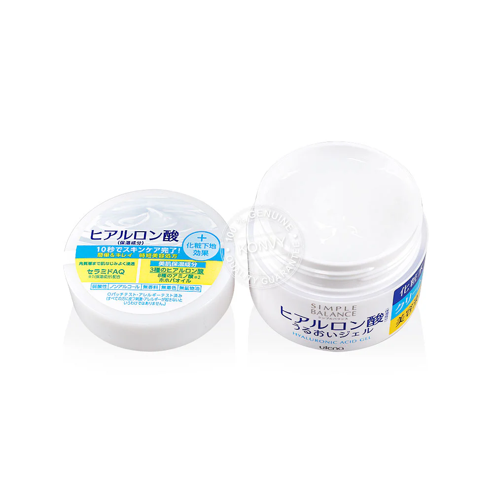 UTENA Simple Balance Hyaluronic Acid Moist Gel 100g A gel formula with hyaluronic acid for beautiful skin in one step with Time-saving Beauty ingredient (Ceramide AQ) that can deeply nourish the skin, absorb into the skin easily, nourish the skin and provide moisture without leaving any stickiness. Contains 4 types of hyaluronic acid skin care ingredients with small particles, so it is quickly absorbed into the skin, nourishing the skin from the outer layer of the skin to the Stratum corneum layer, giving the skin good health and looking young.