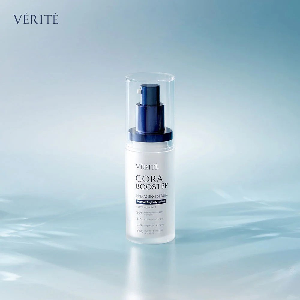 Verita Cora Booster 30ml Skin nourishing serum, combined with Hydrolyzed Collagen Complex and 4X Centella Complex, helps reduce wrinkles, gives skin elasticity and strength, and restores skin and provides long-lasting moisture, revealing smooth, firm, plump, and healthy skin.