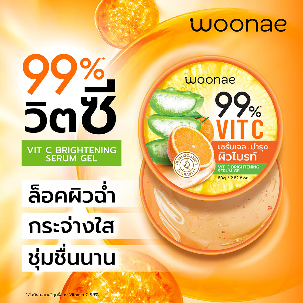Woonae VIT C Brightening Serum Gel 80g skin care gel serum Rich in natural extracts Helps reduce dullness. Adjust the skin to be smooth and radiant. Ready to add moisture to the skin.