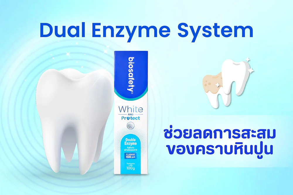 Biosafety White & Protect Toothpaste 100g White & Protect toothpaste helps clean the tooth surface, leaving teeth naturally white with the innovative Dual Enzyme System, creating balance and caring for oral health. Contains 1500 ppm fluoride and a refreshing Wild Bluebell scent.