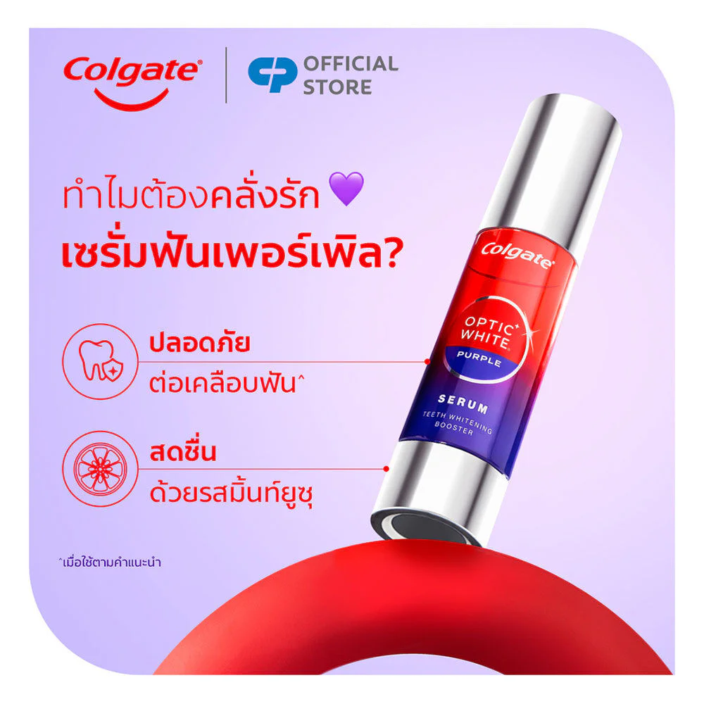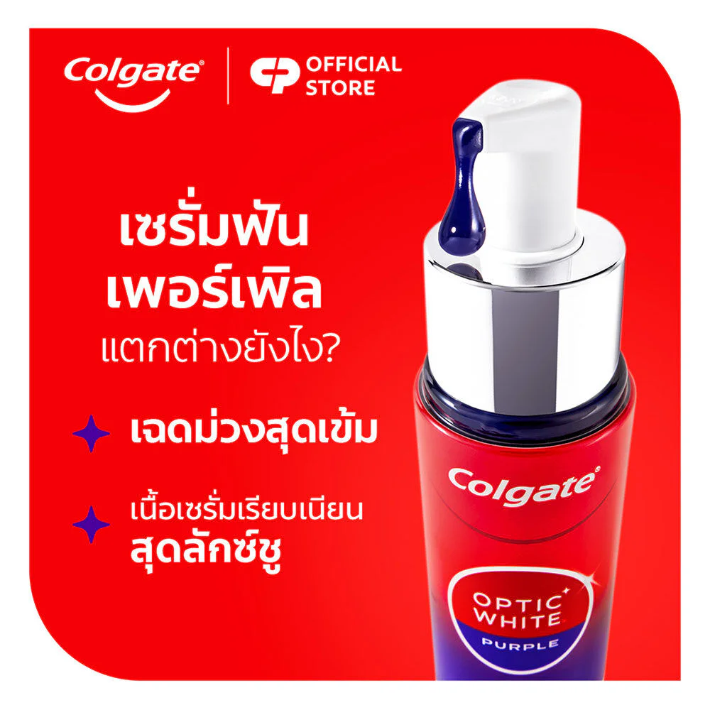 Colgate Optic White Purple Serum 40ml Colgate's first teeth serum, inspired by the theory of light, with an intense purple shade that helps adjust the yellow tone on the surface of the teeth, making them look whiter.