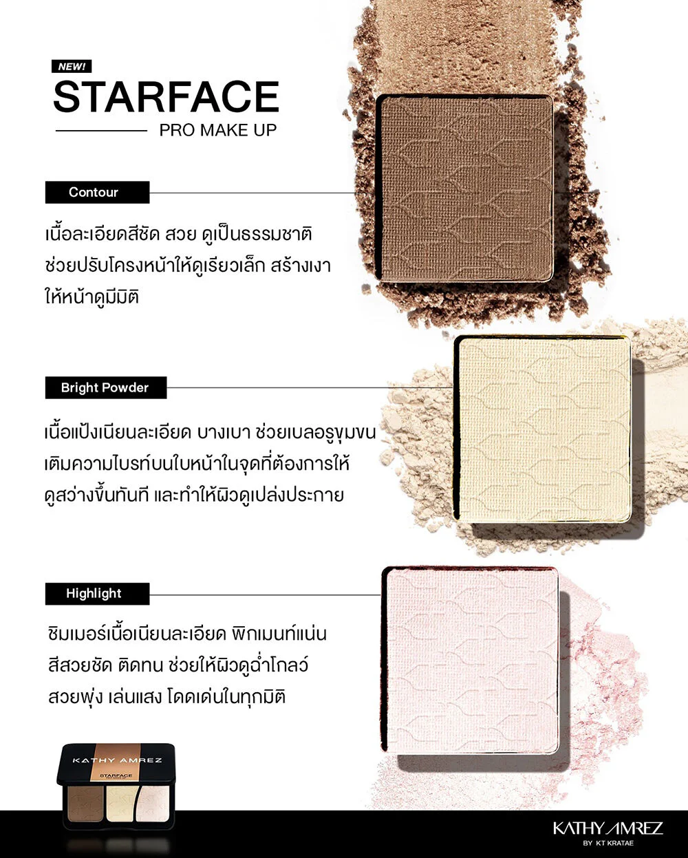 KATHY AMREZ Starface Pro Makeup 9.3gSlimmer face, brighter skin, and a radiant highlighter all in one compact with this highlighter and contour palette. Smooth, easy-to-blend texture, lightweight and comfortable on the skin, with clear, long-lasting shades that can be used on all skin tones.
