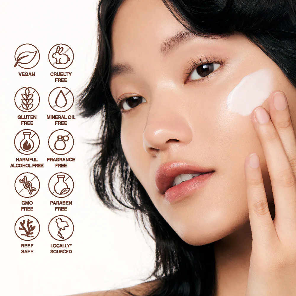 EVERPINK Bright Side Sunscreen SPF50+ PA++++ 30ml Hybrid Sunscreen  IFresh gel texture is light, absorbs quickly, does not leave white residue, protects skin from harmful UV rays. Features a concentrated extract 1% from basil leaves grown and harvested in Thailand, and extracts from chamomile flowers, aloe vera, and vitamins to help nourish the skin while exposed to sunlight. Coral-friendly formula.