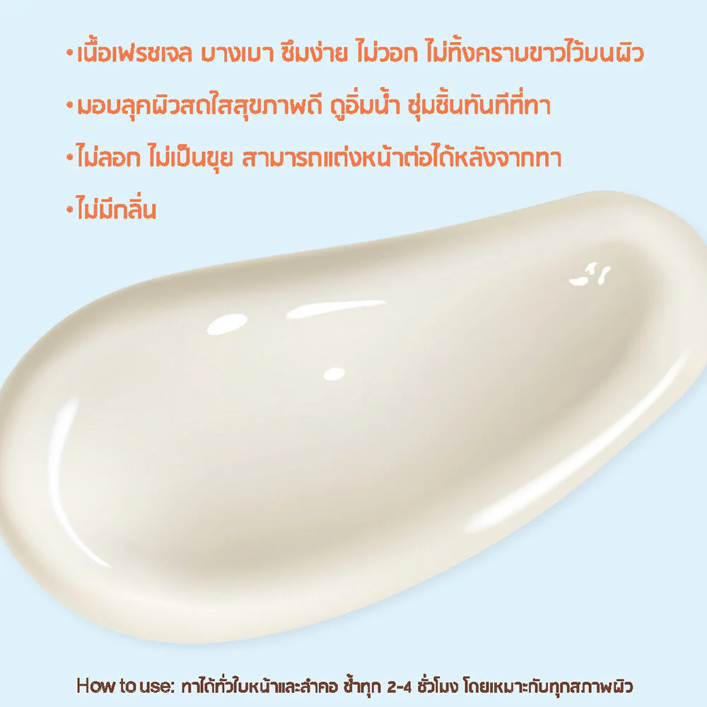 • Fresh gel texture, light, easy to absorb, not white, no white residue.