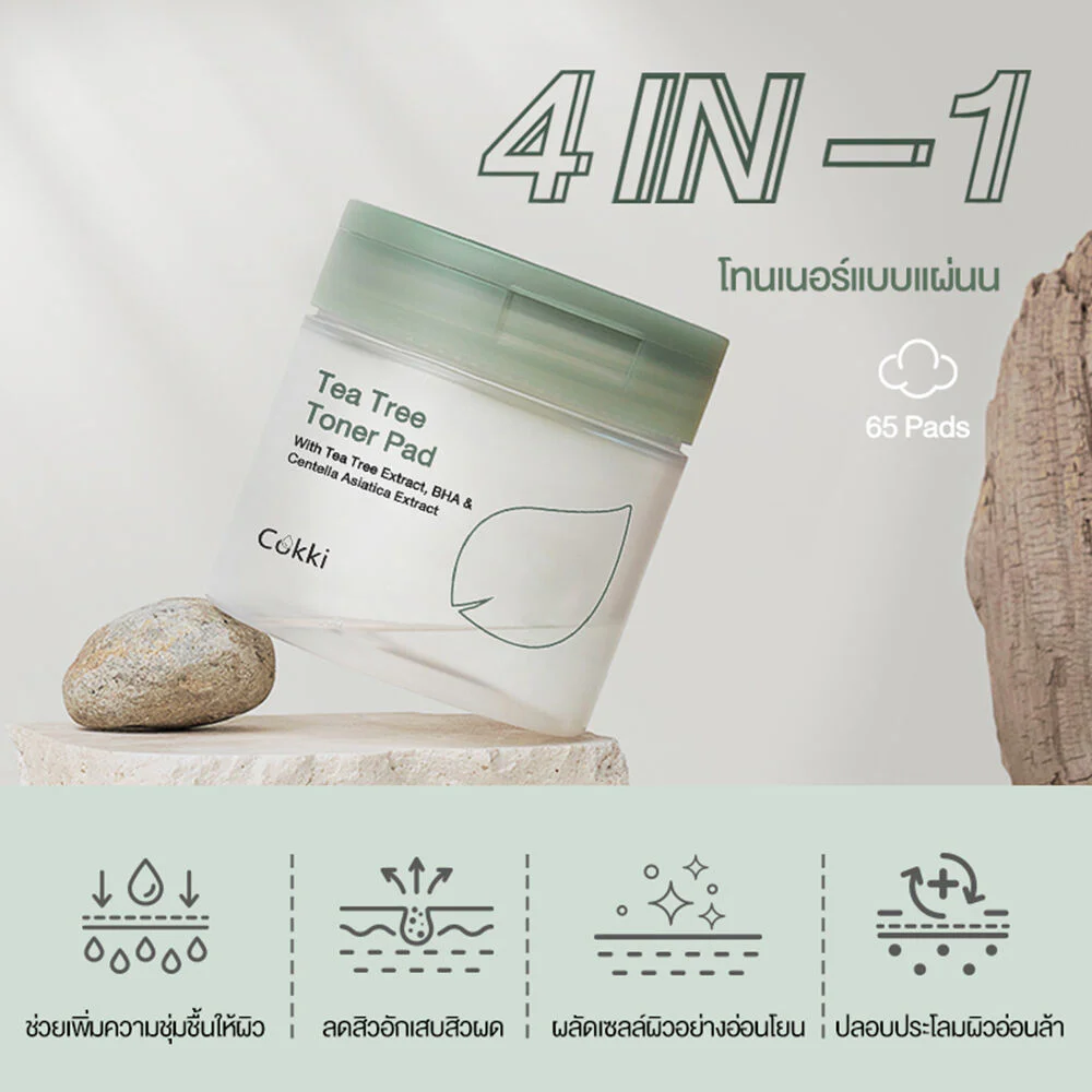 cokki Tea Tree Toner Pad 65 Pads Toner pads help condition your skin before applying makeup, soothe your skin, and deeply moisturize, leaving your skin looking soft and plump.