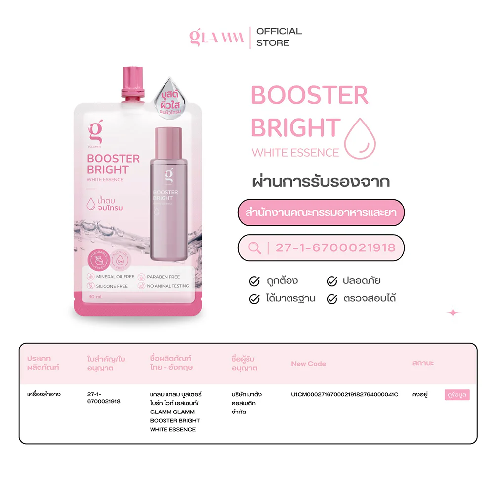 GLAMM Booster Bright White Essence 30ml#Facial toner that heals dull skin. Facial essence that helps retain moisture, strengthens the skin's protective barrier, and increases elasticity for smooth, soft skin.
