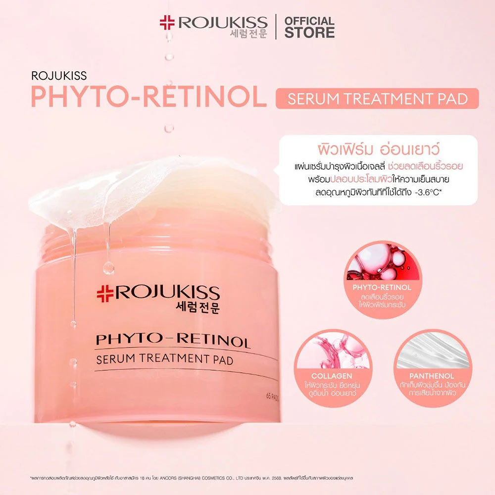 Rojukiss Phyto-Retinol Serum Treatment Pad 7g These jelly-textured serum pads help reduce wrinkles and soothe irritated skin. They provide a cooling sensation, instantly reducing skin temperature by up to -3.6°C. They can be used as cleansing pads for deep cleansing and gentle exfoliation, or as a mask to boost collagen production, hydrate, and reduce wrinkles.