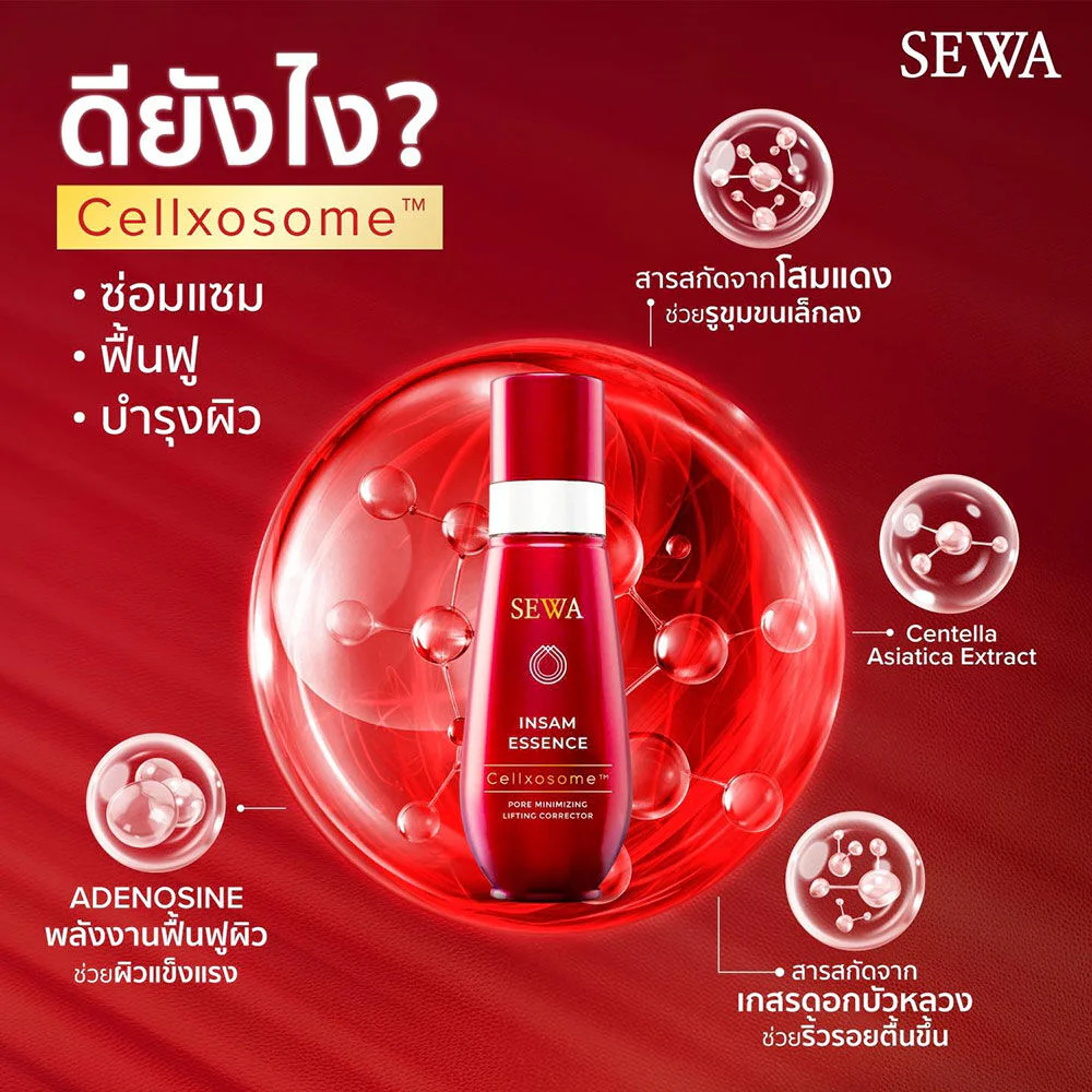 SEWA Insam Essence Cellxosome 8mlSkin nourishing essence contains ginseng extract, which is rich in saponin, which nourishes the skin and makes it more elastic. It combines Cellxosome™, a unique technology of Ceva that helps to soothe and restore the skin. Exosome is an extract derived from Centella Asiatic that strengthens the skin's protective barrier but also reduces skin irritation. It also helps to tighten pores and control excess oil.