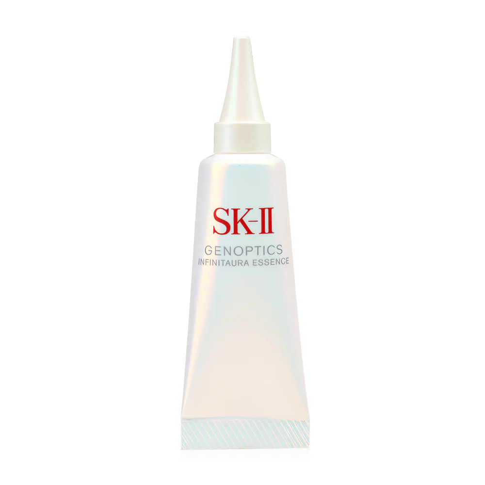 SK-II Genoptics Infinitaura Essence 10ml SK-II's cutting-edge facial essence contains PITERA™ x Brilliant Complex Essence (patented antioxidant Bisabolol ProIII, SDL+, Nicotinamide,  Lotus Essence), a brightening complex that helps reduce the appearance of dark spots and improves the appearance of yellowness and redness.