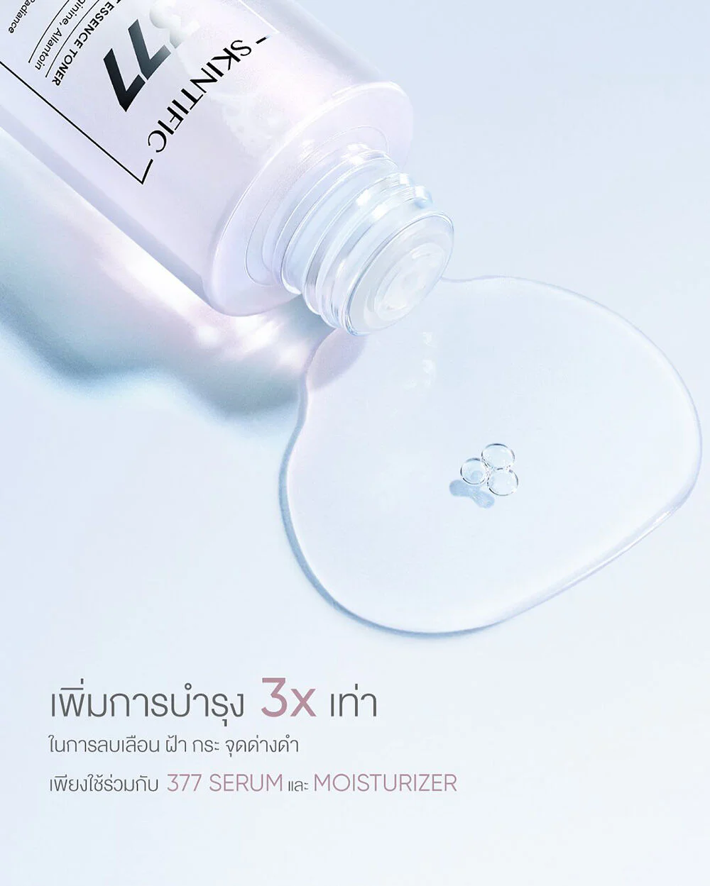 SKINTIFIC 377 Dark Spot Essence Toner 80ml Toner formula 377 is light and absorbs quickly, not sticky. With 377 Pro Optical Scattering Technology and natural nutrients, it helps reduce dark spots, revealing brighter skin. Suitable for all skin types.