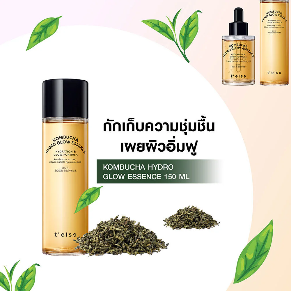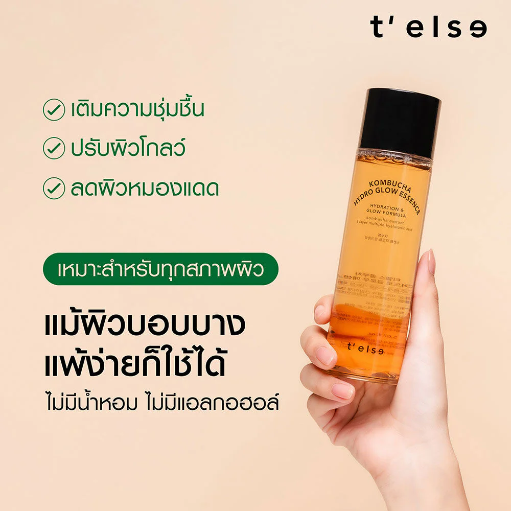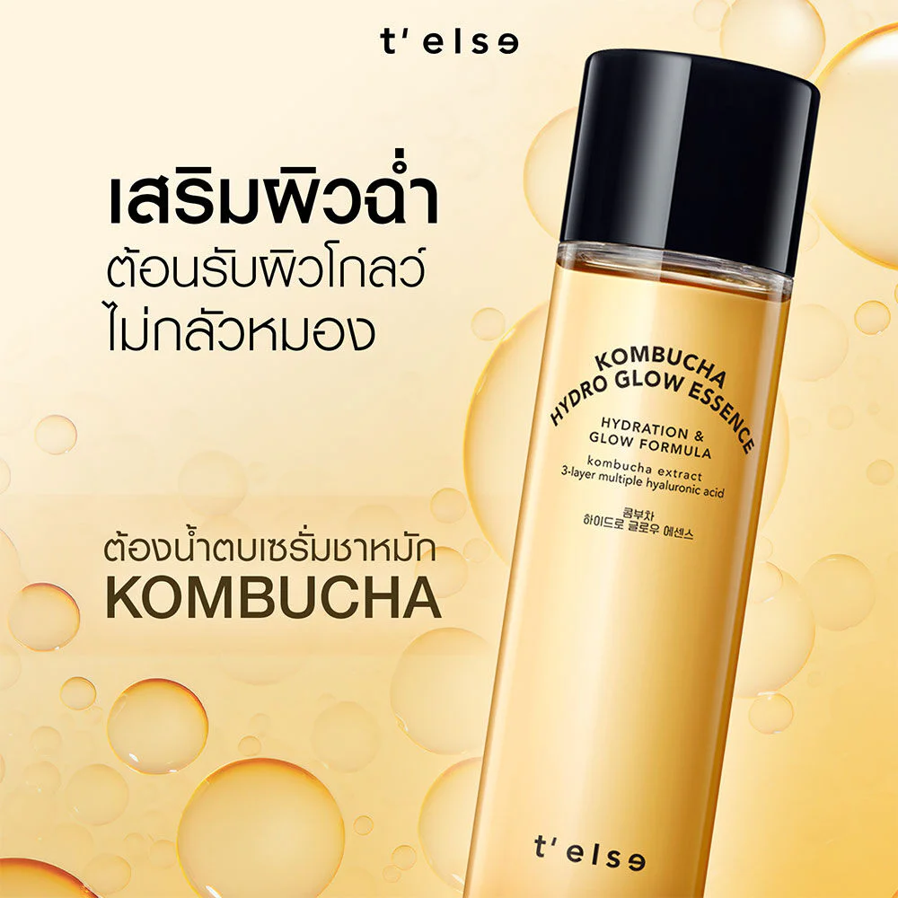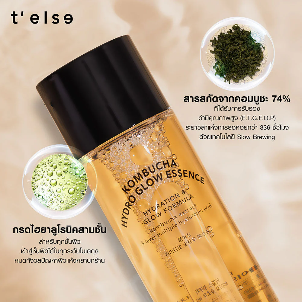 TELSE Kombucha Hydro Glow Essence 150ml Facial essence with a rich texture, enriched with Kombucha extract 74% combined with 3 types of Hyaluronic Acid, effectively provides moisture and makes skin look brighter and more radiant.