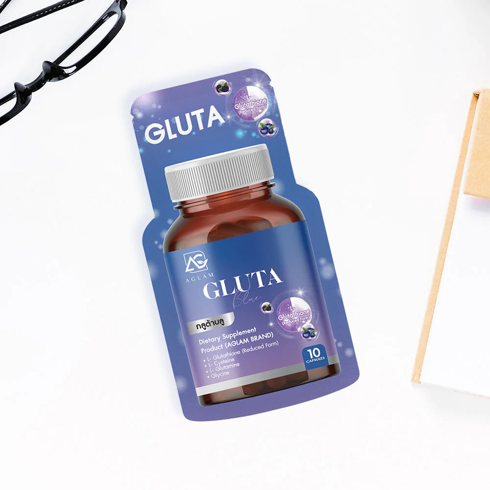 AGLAM Gluta Blue 1000mg 10 Capsules Gluta Blue dietary supplement is enriched with L-Glutathione in Reduced form, L-Cysteine and Alpha-Lipoic Acid (ALA).