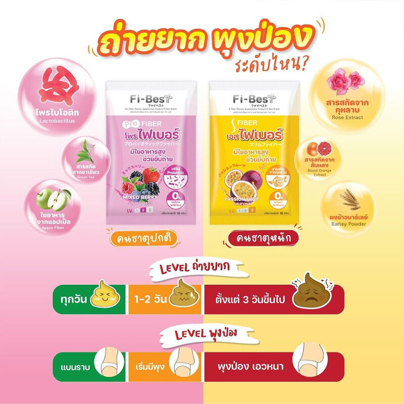 Fi-Bes Pro Fiber 122.8g#Mixed Berry Fiber dietary supplements Probiotic formula Mixed Berry Flavor Rich in dietary fiber, 12,850 mg., combined with natural extracts such as probiotics, green tea extract, high dietary fiber from apples.
