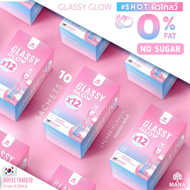 MANA Glassy Glow 10 Sachets Dietary supplements in oral powder form Contains white tomato extract from Korea. Combines 12 types of extracts in one envelope.