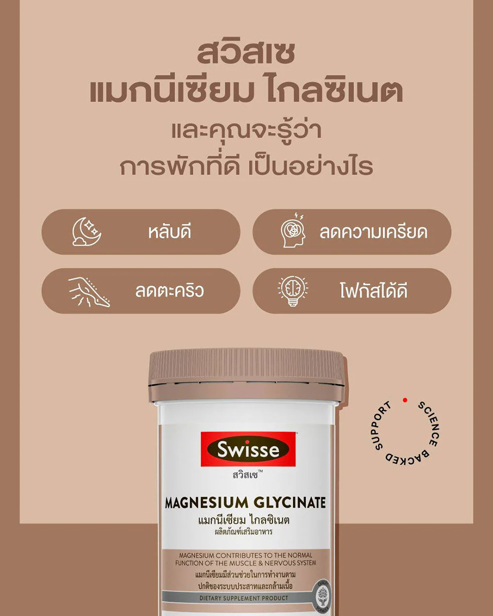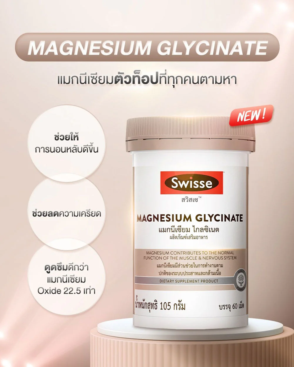 SWISSE Magnesium Glycinate 60 Tablets This premium magnesium glycinate dietary supplement uses 150 mg of magnesium glycinate, ensuring high absorption by the body.