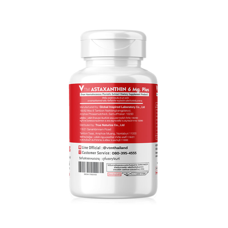 VTM Astaxanthin 6mg Plus 30 Capsules Astaxanthin dietary supplement 6 mg. extracted from Haematococcus pluvialis algae, combined with Coenzyme Q10 and Pycnogenol, 30 capsules