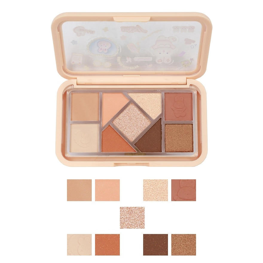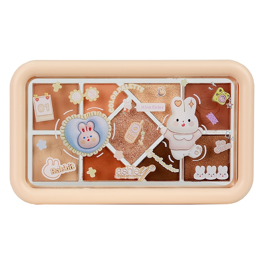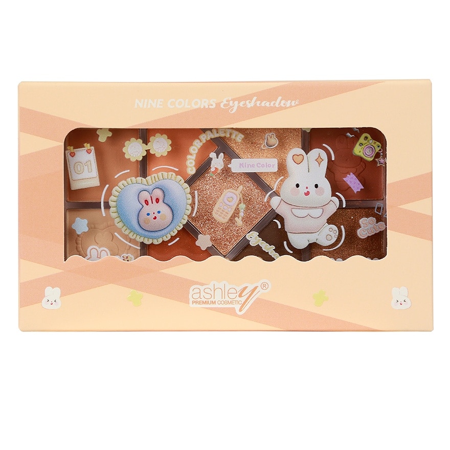 Add brightness with Ashley 9 Colors Eyeshadow in a sweet, colorful eye palette. 9 natural-toned eyeshadow choices have been chosen to complement your skin tone and be suitable for everyday use. Textures include glitter, shimmer, and matte. Create a unique look every day. Beautiful, distinct color, long lasting and easy to blend. Creates a lovely texture. Giving a natural finished look and the eyelids look colorful and healthy-looking. Includes an adorable cartoon pattern on a new product line design that helps you have fun and enjoy applying makeup every time. Easy to carry, small size and satisfying the needs of workers as well as teenagers. There are 2 available color tones 01 Orange tone 02 Pink tone