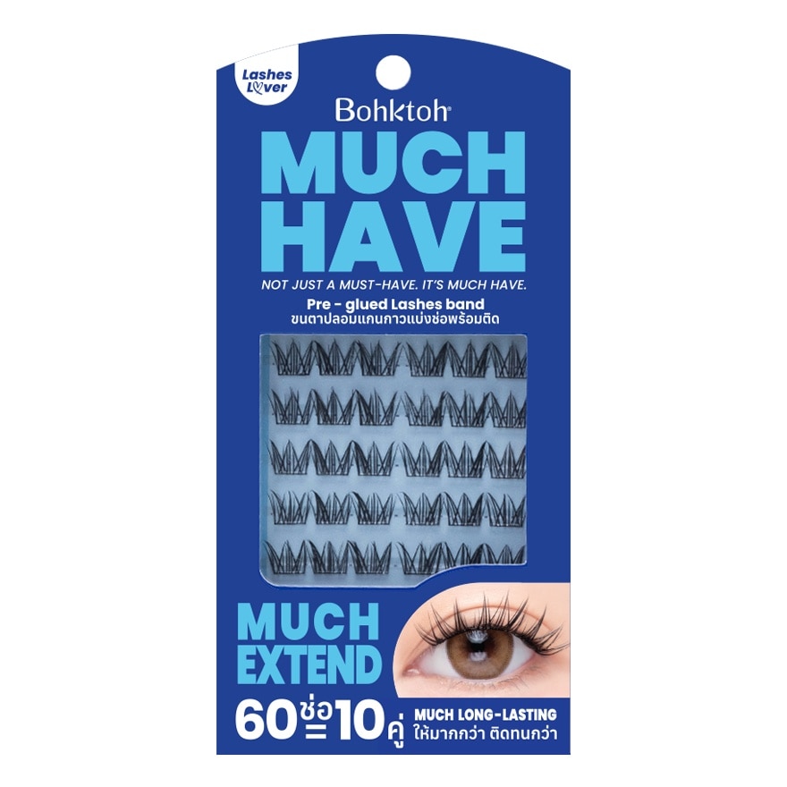 Bohktoh Much Have Pre Glue LashesPre-applied, glue-on false eyelashes.Beautifully arranged with a laser, they enhance your look. They're perfect and don't need to be said, because beauty always speaks for itself.Pre-applied, glue-on false eyelashes. Get beautiful, fast, and glue-free! Transform your ordinary look into a stunning look in an instant with these pre-applied, glue-on false eyelashes. These are perfect for modern women, offering easy, fast, and convenient application in one step. No glue required.Apply false eyelashes without waiting for the glue to dry. No mess! The glue-on lashes blend seamlessly with your natural lashes. Choose from a wide variety of styles.60 lashes, or enough for up to 5 pairs, offer great value for every day. Even beginners can apply their own lashes in seconds.