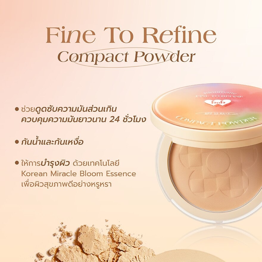 Barenbliss Bloomatte Compact Powder A longwear ultra light compact powder with SPF 25 PA 2 plus blots away excessive oil and reduces shine, delivers an airbrushed matte finish.
