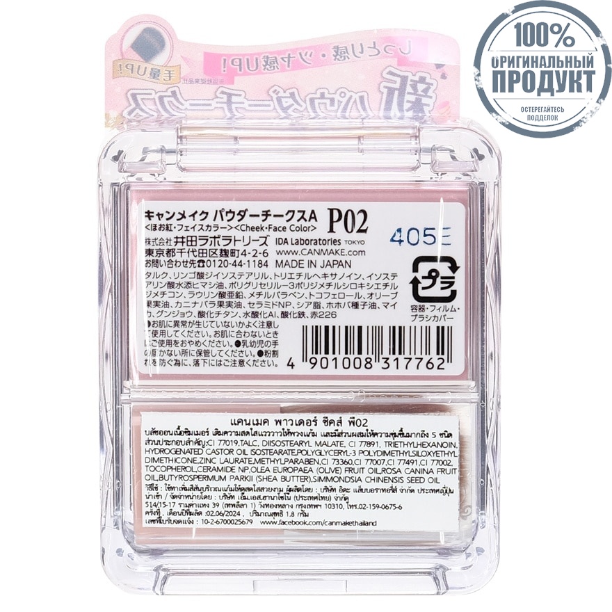 Подробное описание товара на сайте поставщика https://www.watsons.co.th/en/canmake-canmake-powder-cheeks-p02/p/BP_318015
