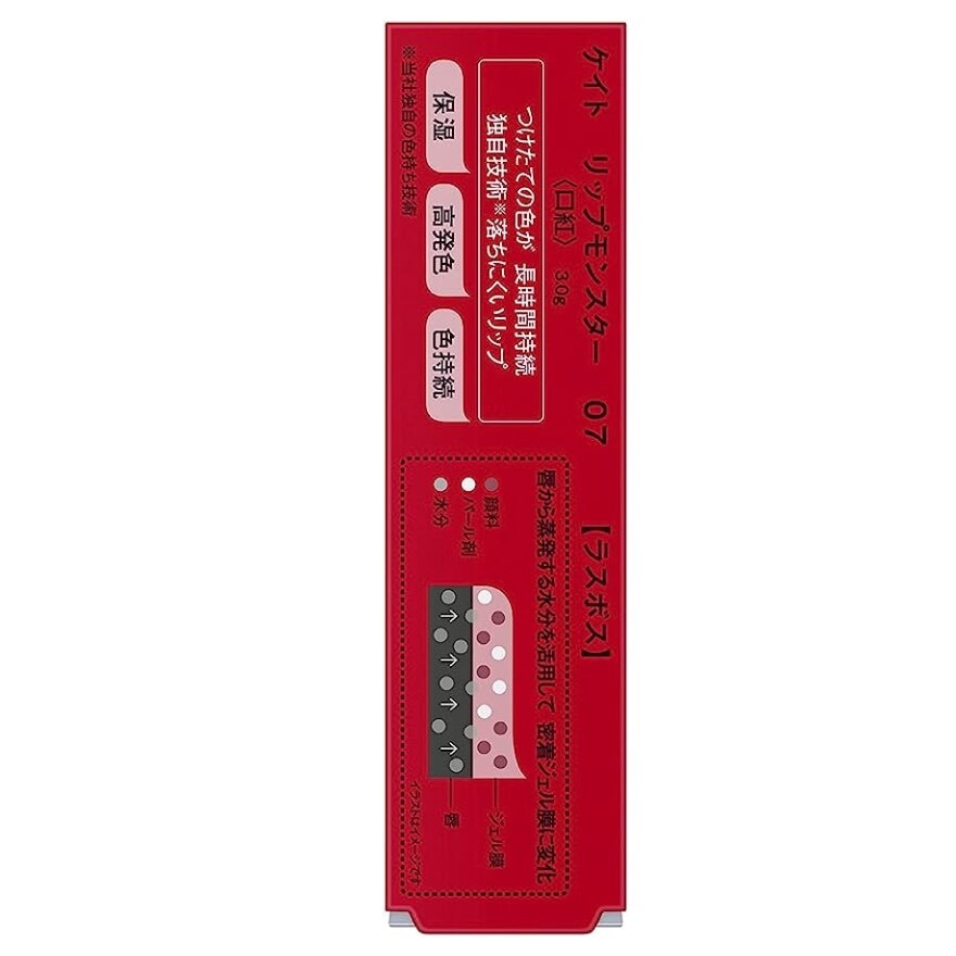 KATE Lip Monster 3g 07 Final Boss. Get both lasting effects and vivid coloration. A Lipstick thai doesnot fade. With colors lasting as they are. Vivid Coloration. Long Lasting. Highly Moisturizing. Secret behind lasting effects. Utilizes moisture that evaporates from the lips to create an adhesive gel film. Proprietary technology achieves long-lasting color. (Kanebo's proprietary color-lasting technology) With KATE LIP MONSTER that lasts. Won't easily come off even when wearing a mask. Less color gets on a cups when you drink.