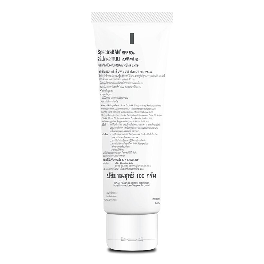Подробное описание товара на сайте поставщика https://www.watsons.co.th/en/spectraban-spectraban-spf-50-pa-100g/p/BP_139729